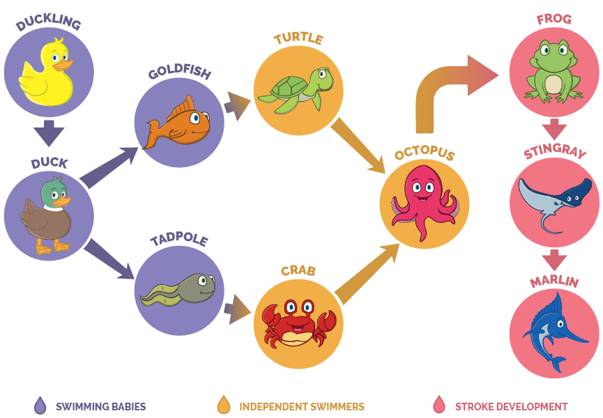 - In the earlier levels of Ducklings, Ducks and Goldfish, classes are distinguished by age rather than ability. Beyond these levels, ability determines level progression.